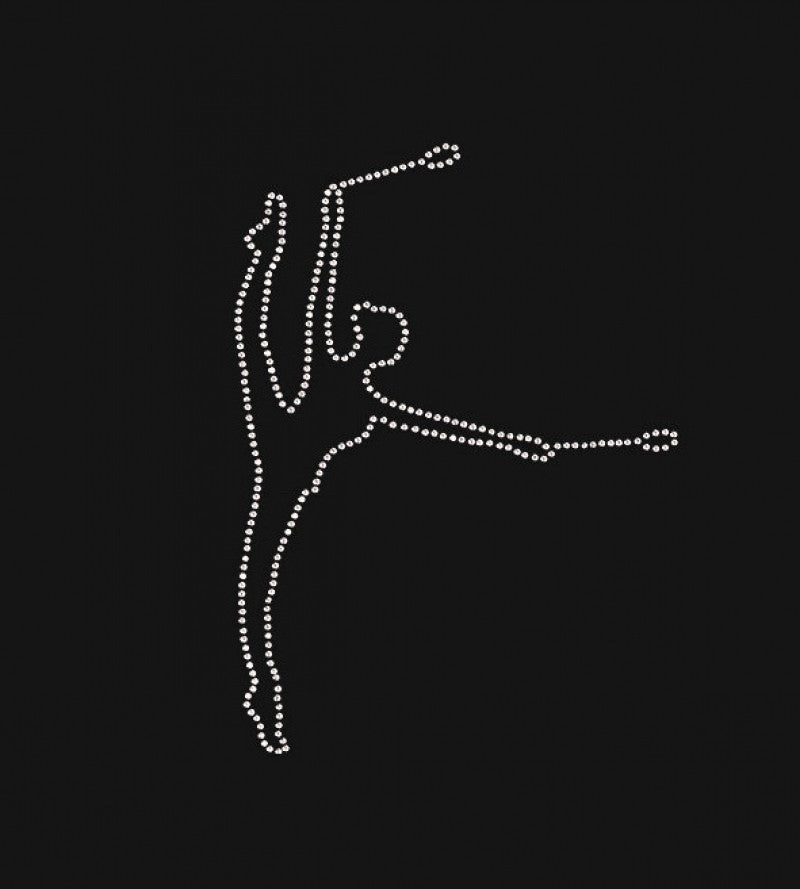 Personalizzazione per ginnastica ritmica 100% made in Italy, realizzata con cristalli. Può essere applicata davanti o dietro la maglietta. Misure: altezza 18 cm, Larghezza 13 cm.