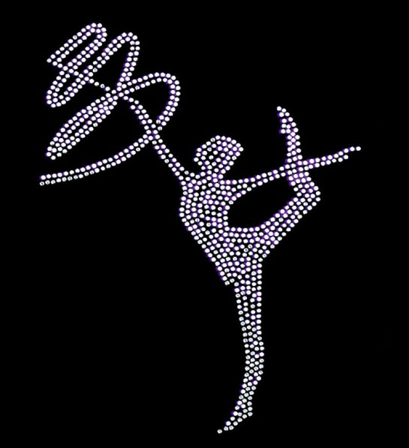Personalizzazione per ginnastica ritmica 100% made in Italy, realizzata con cristalli. Può essere applicata davanti o dietro la maglietta. Misure: Altezza 18 cm, Larghezza 13 cm.