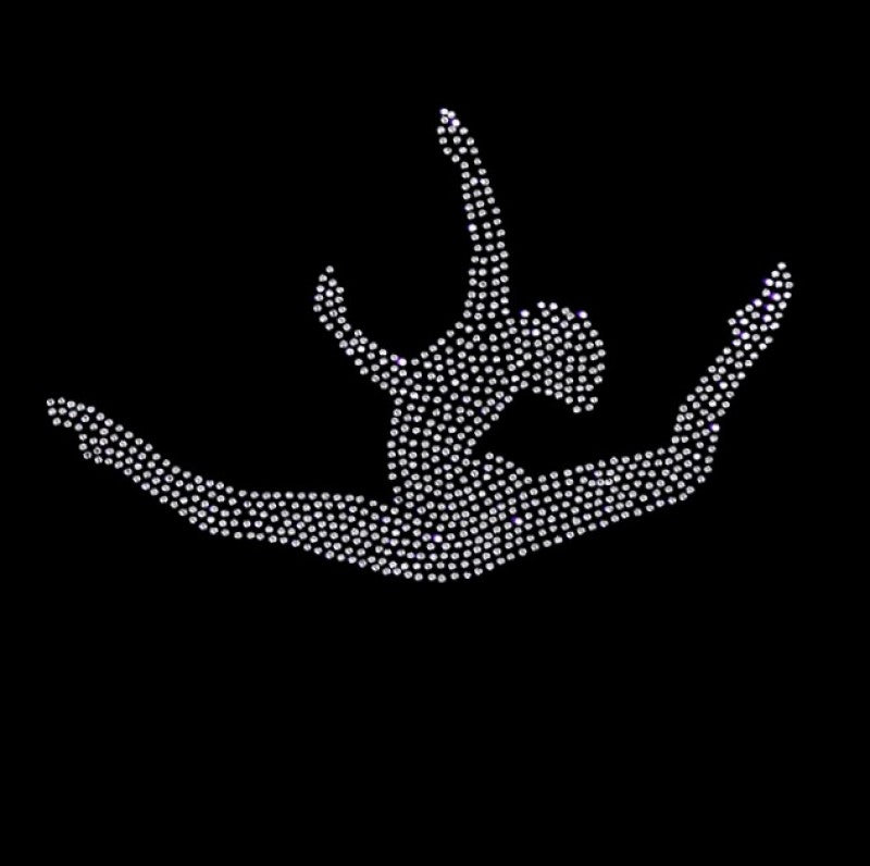 Personalizzazione per ginnastica ritmica e artistica 100% made in Italy, realizzata con cristalli. Può essere applicata davanti o dietro la maglietta. Misure: Altezza 12 cm, Larghezza 18 cm.