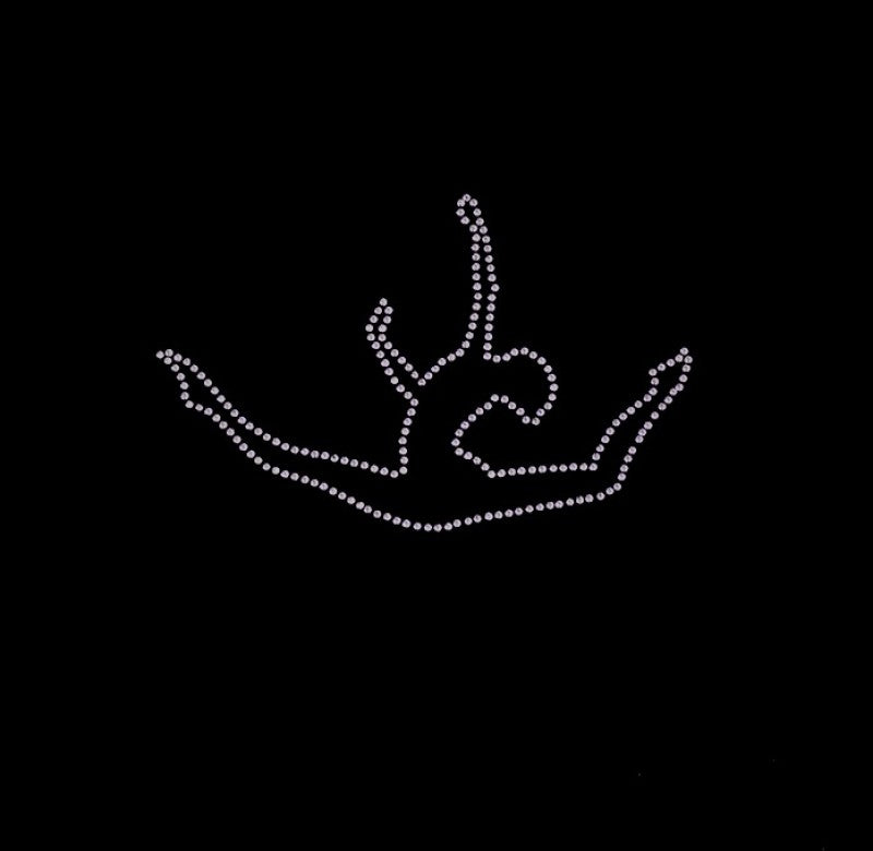Personalizzazione per ginnastica ritmica e artistica 100% made in Italy, realizzata con cristalli. Può essere applicata davanti o dietro la maglietta. Misure: Altezza 8 cm, Larghezza 18 cm