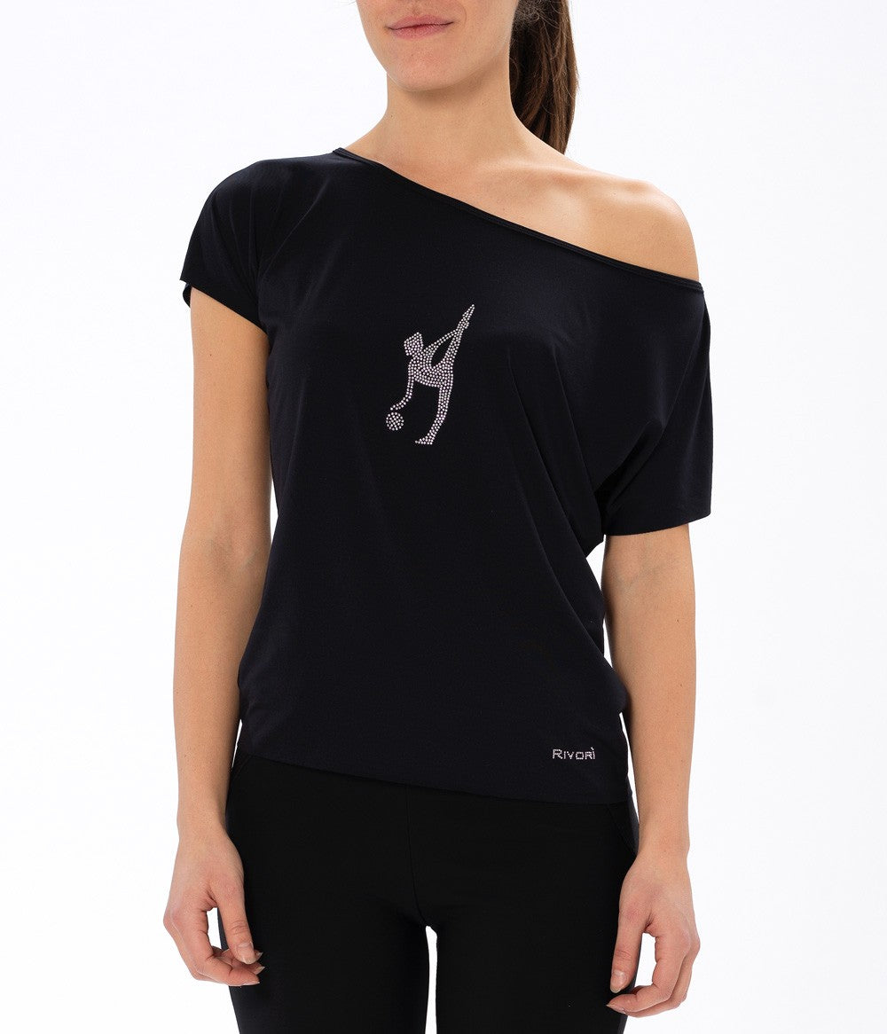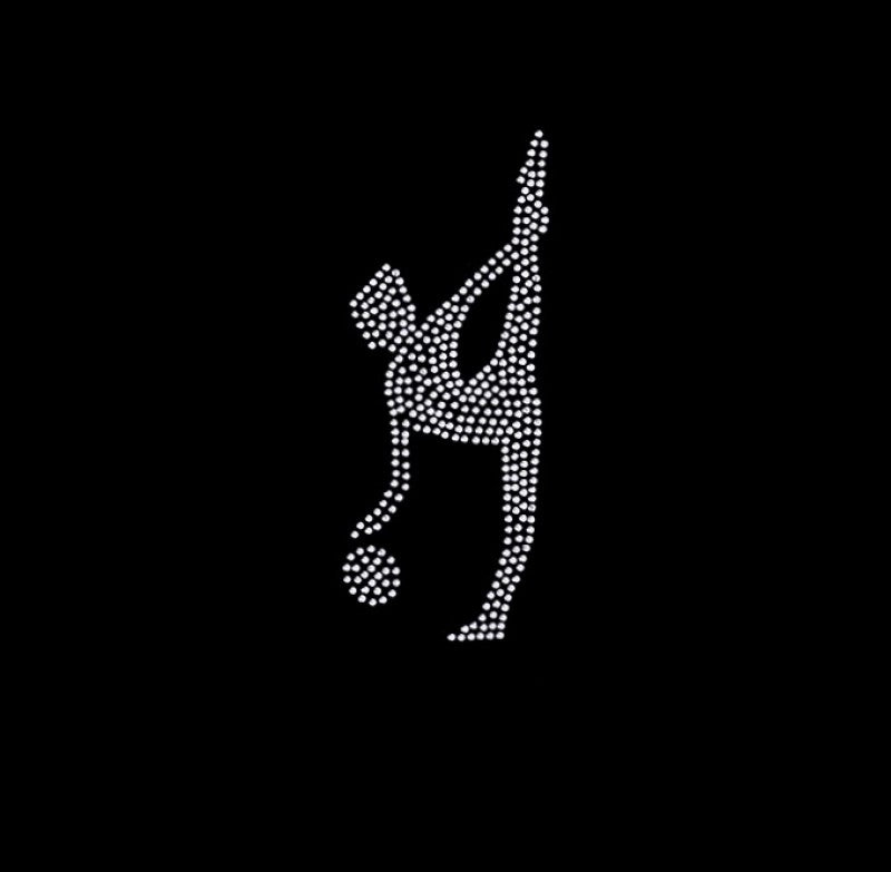 Personalizzazione per ginnastica ritmica 100% made in Italy, realizzata con cristalli. Può essere applicata davanti o dietro la maglietta. Misure: altezza 13 cm, Larghezza 5 cm